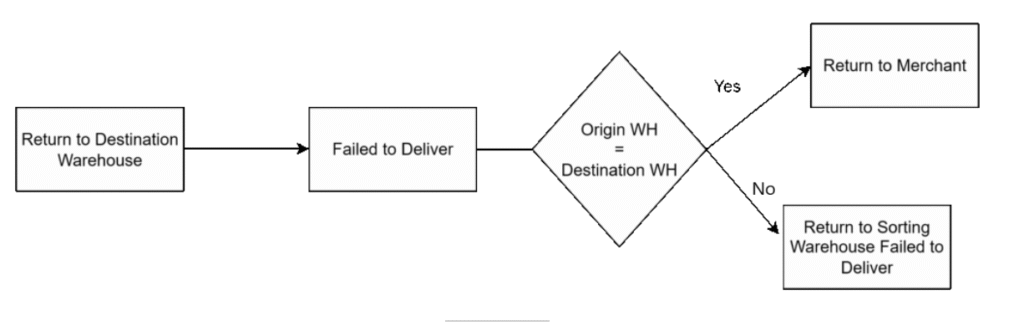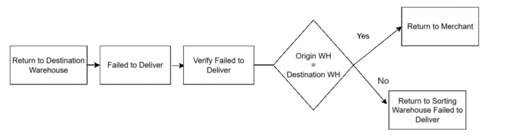 The rider returns the parcel to the destination warehouse. - Move Failed to deliver Orders to “Verify Fail to Deliver” status Before “Return to Sorting Warehouse Failed to Deliver” Or “Return to Merchant”